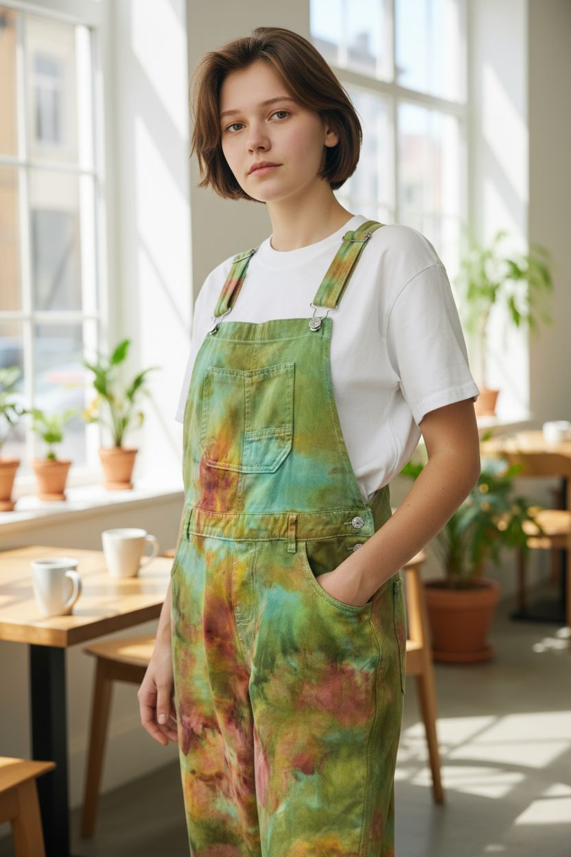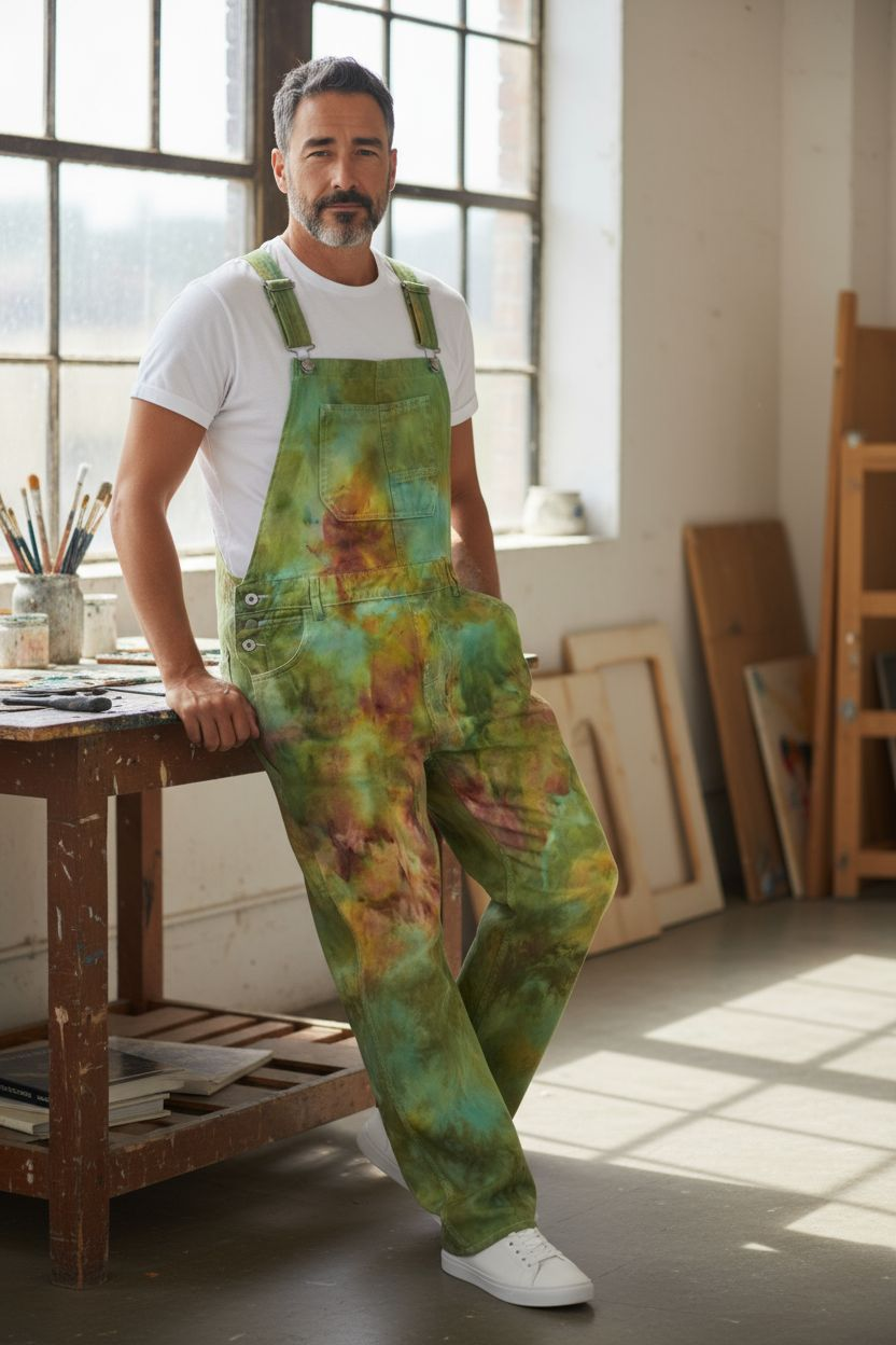 Green/orange features in this Size L Denim pair of Overalls.